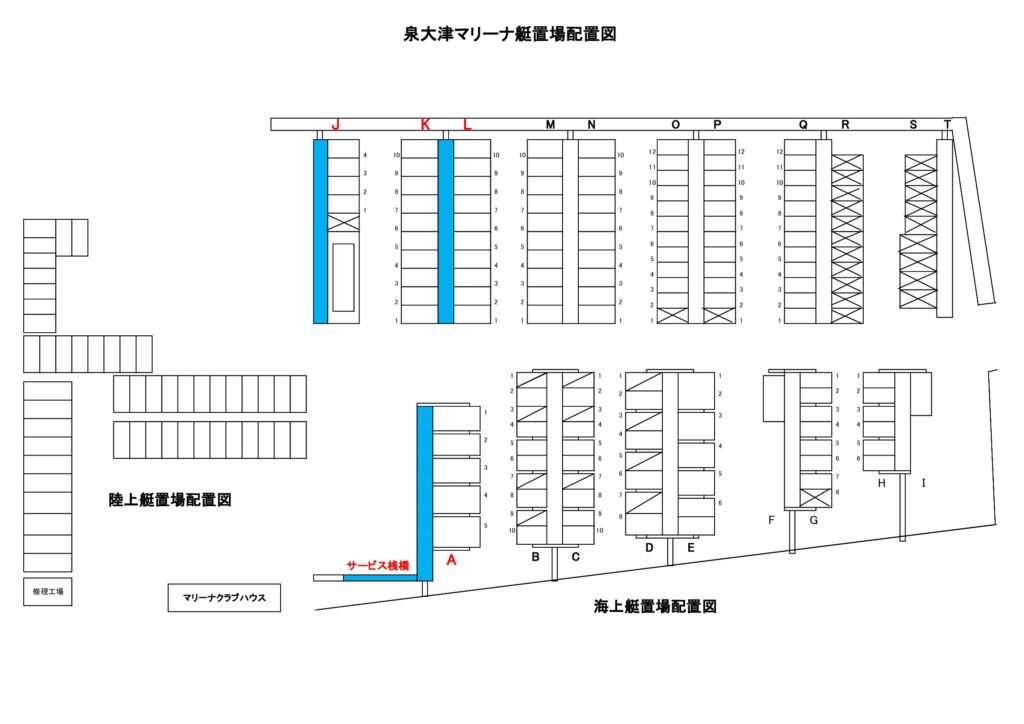 1.調査場所: A・J桟橋、K・Lヨット桟橋、渡橋連結部(サービス桟橋)